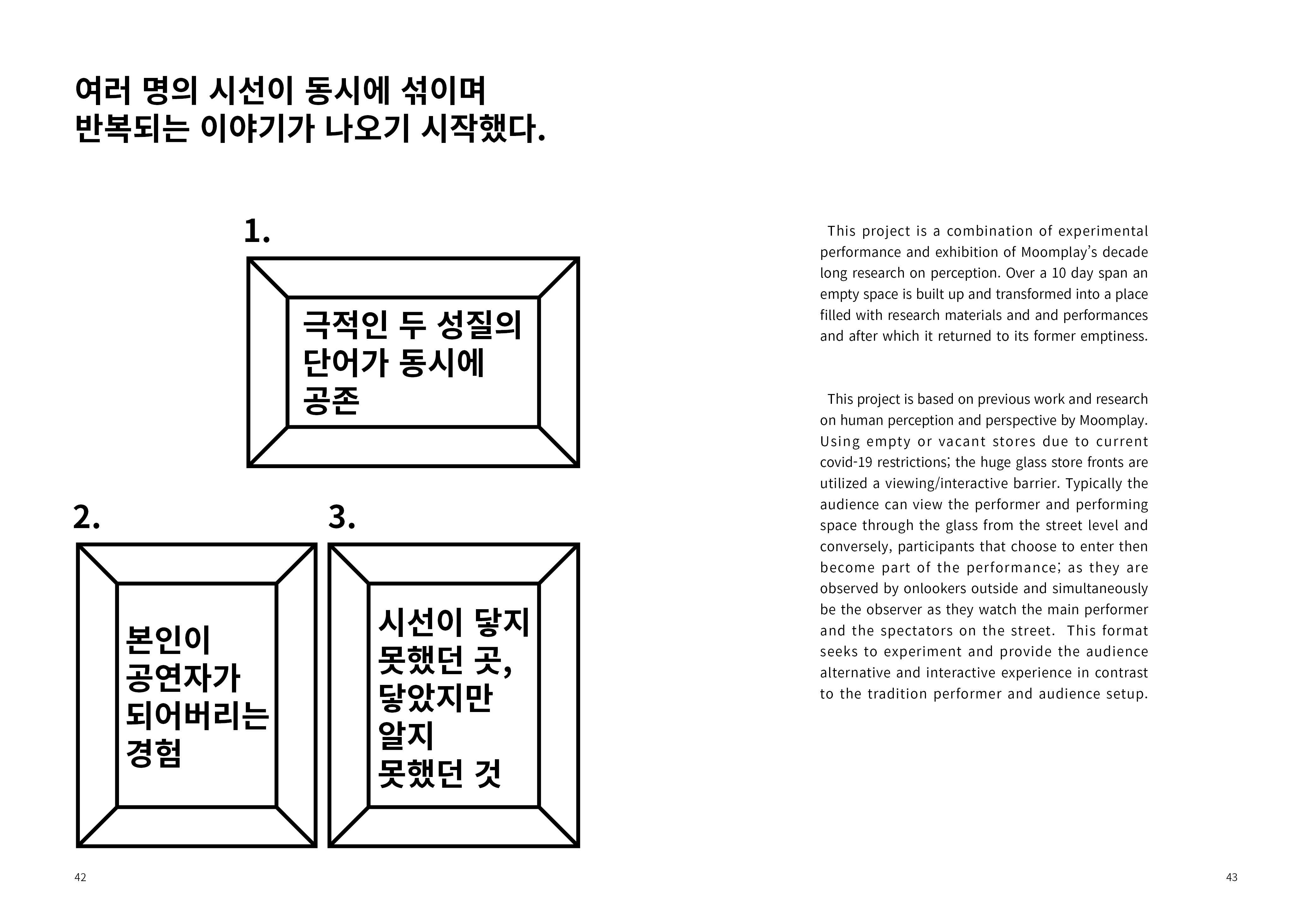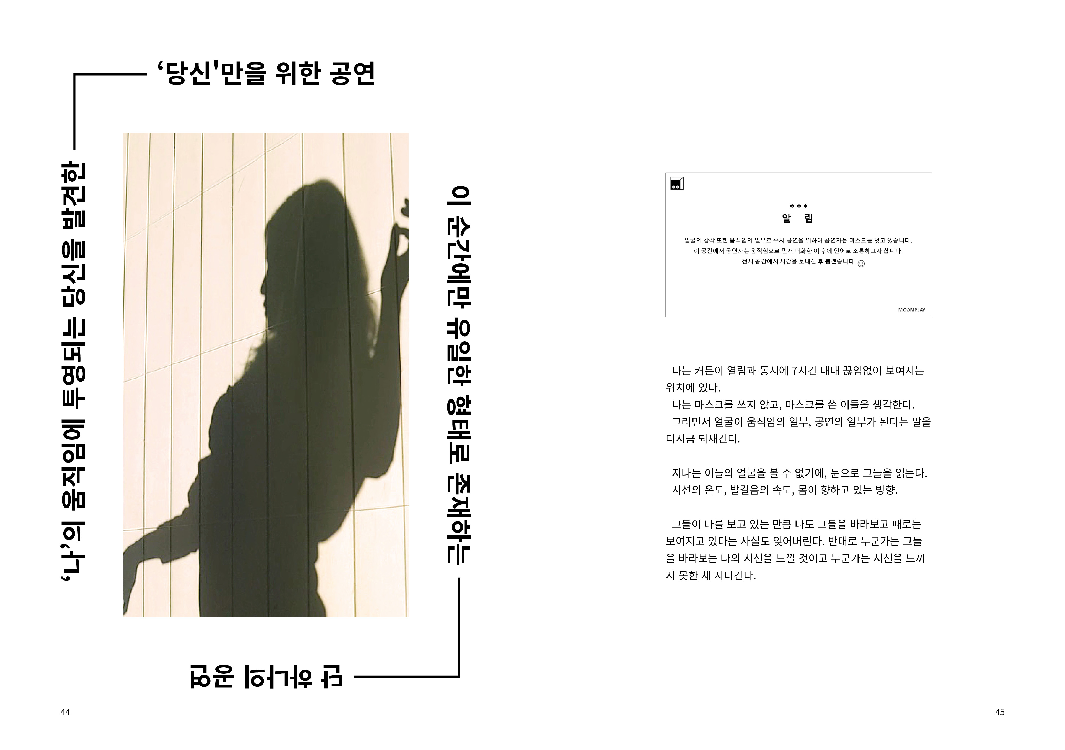 Divided by the 5 keywords (Language, Body, Sight, Audience, Space) of Moomplay, these are archived pages for rumination of ideas, theories and processes undertaken through various projects since 2009. Please feel free to reach out to us at moomplayofficial@gmail.com to discuss. Opinions, commentary and feedback are always welcomed and appreciated.