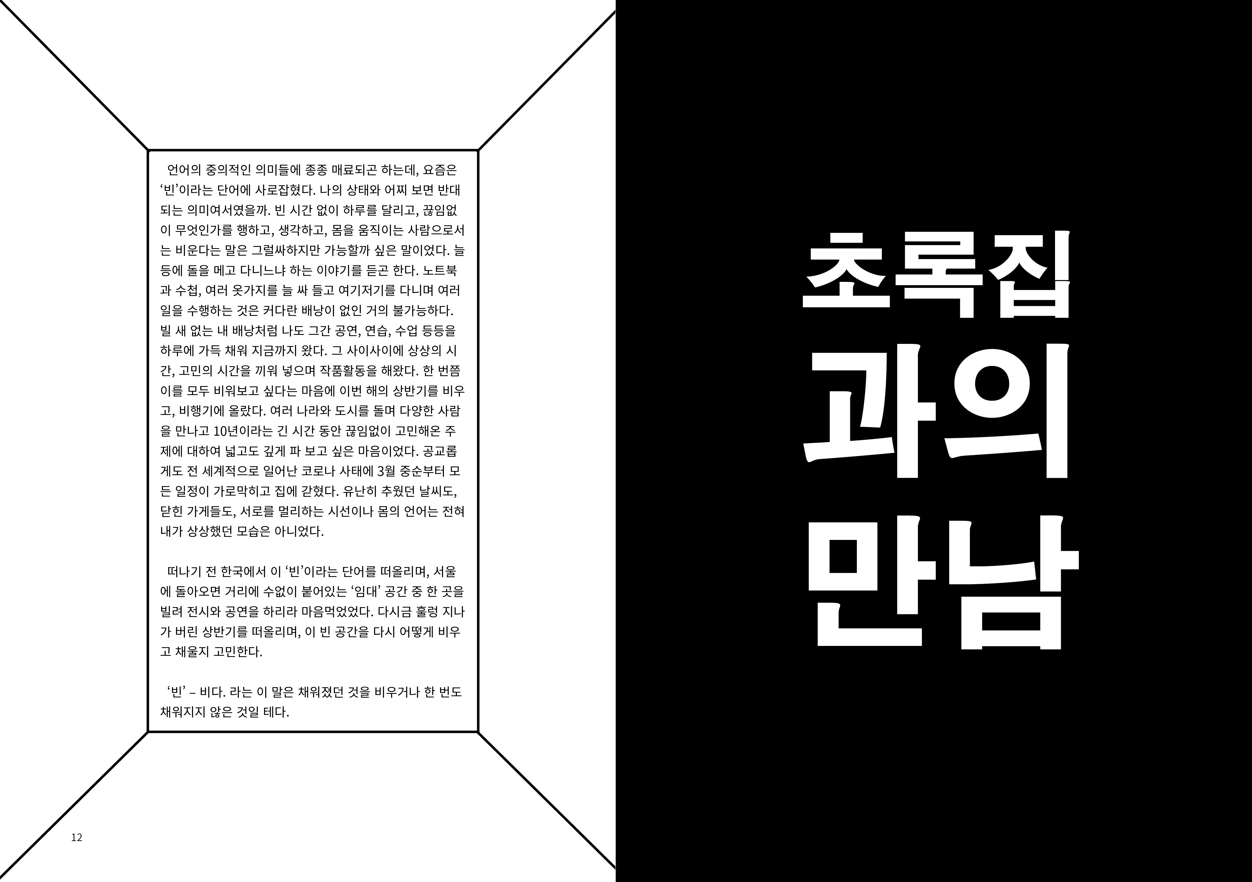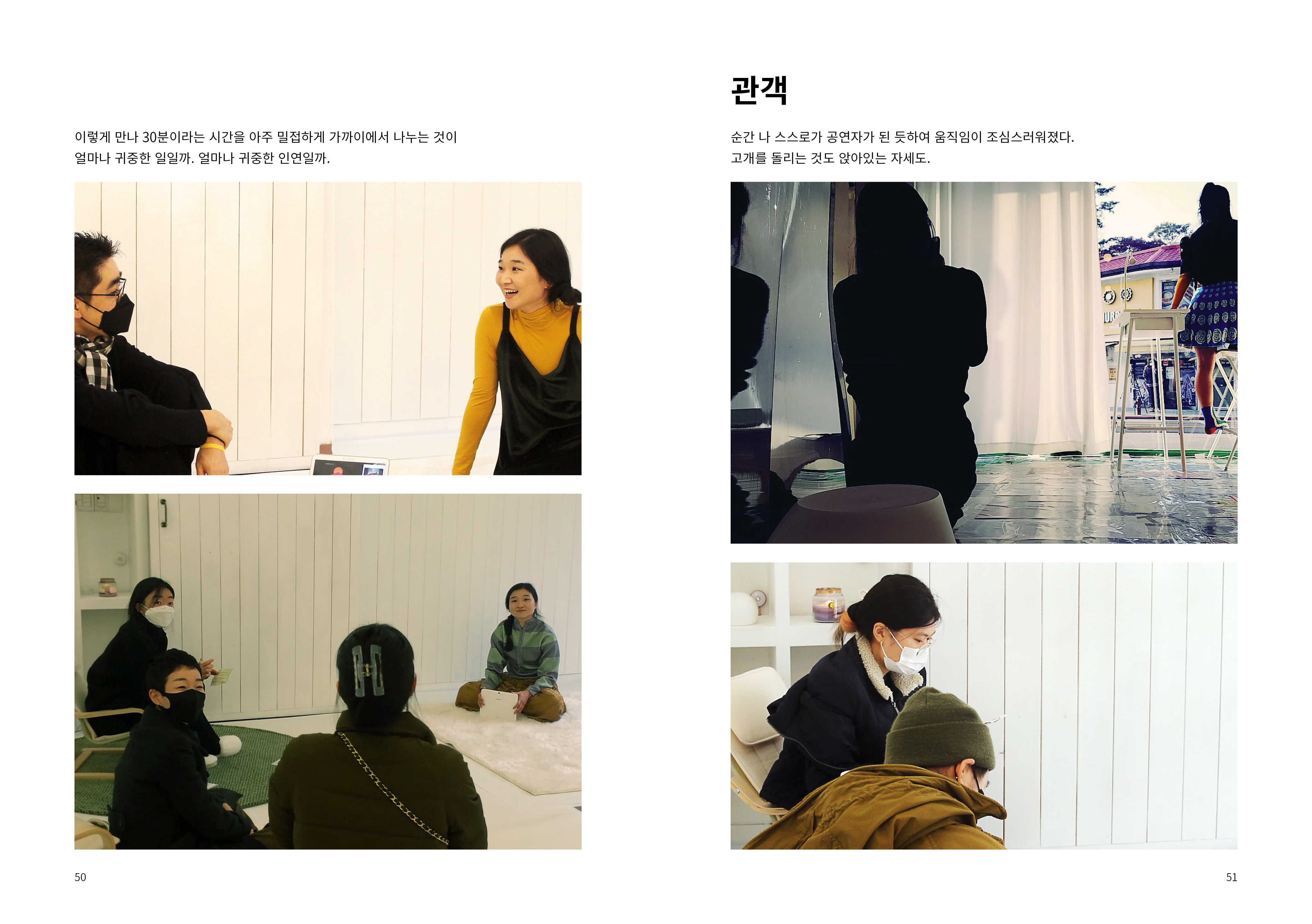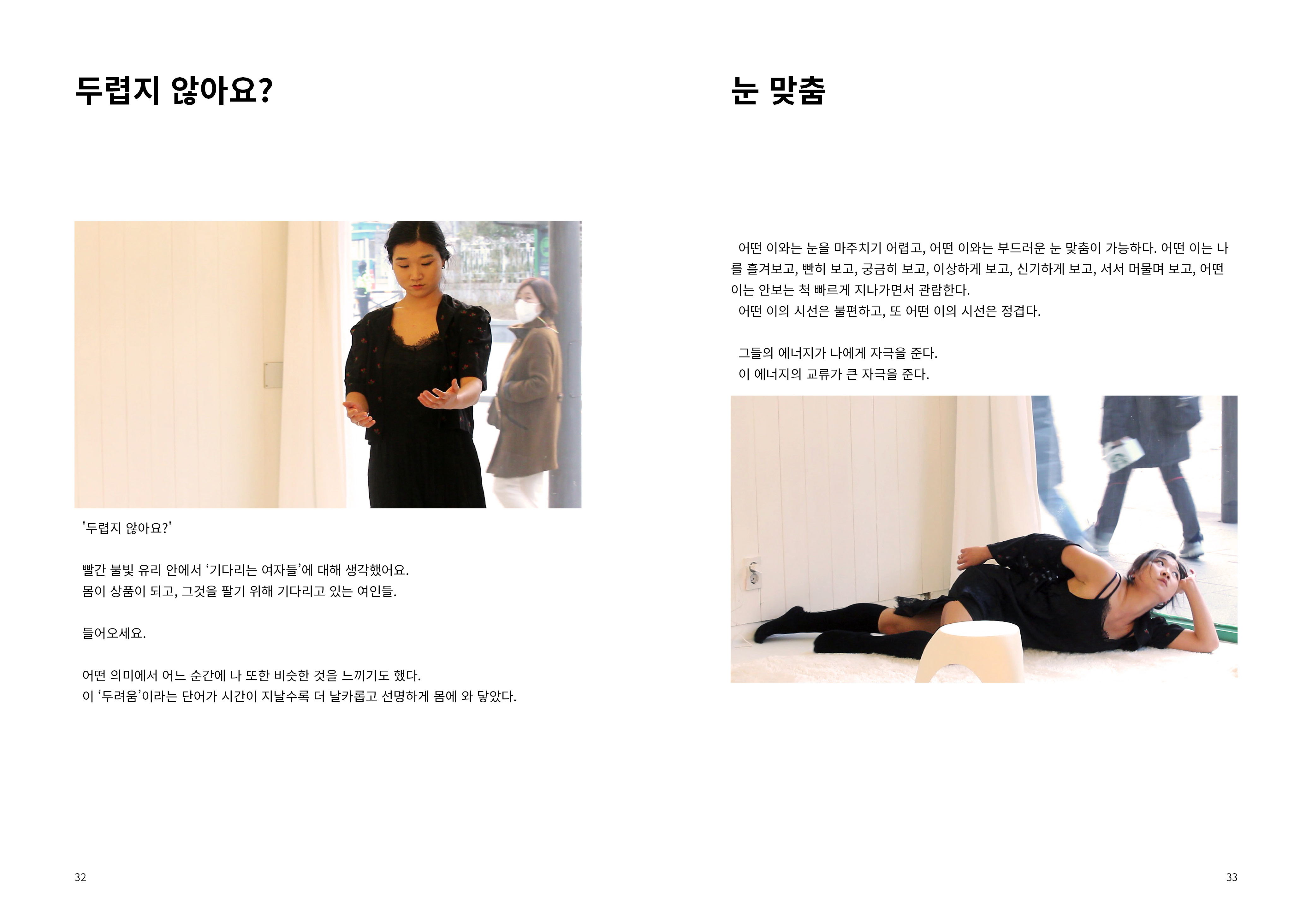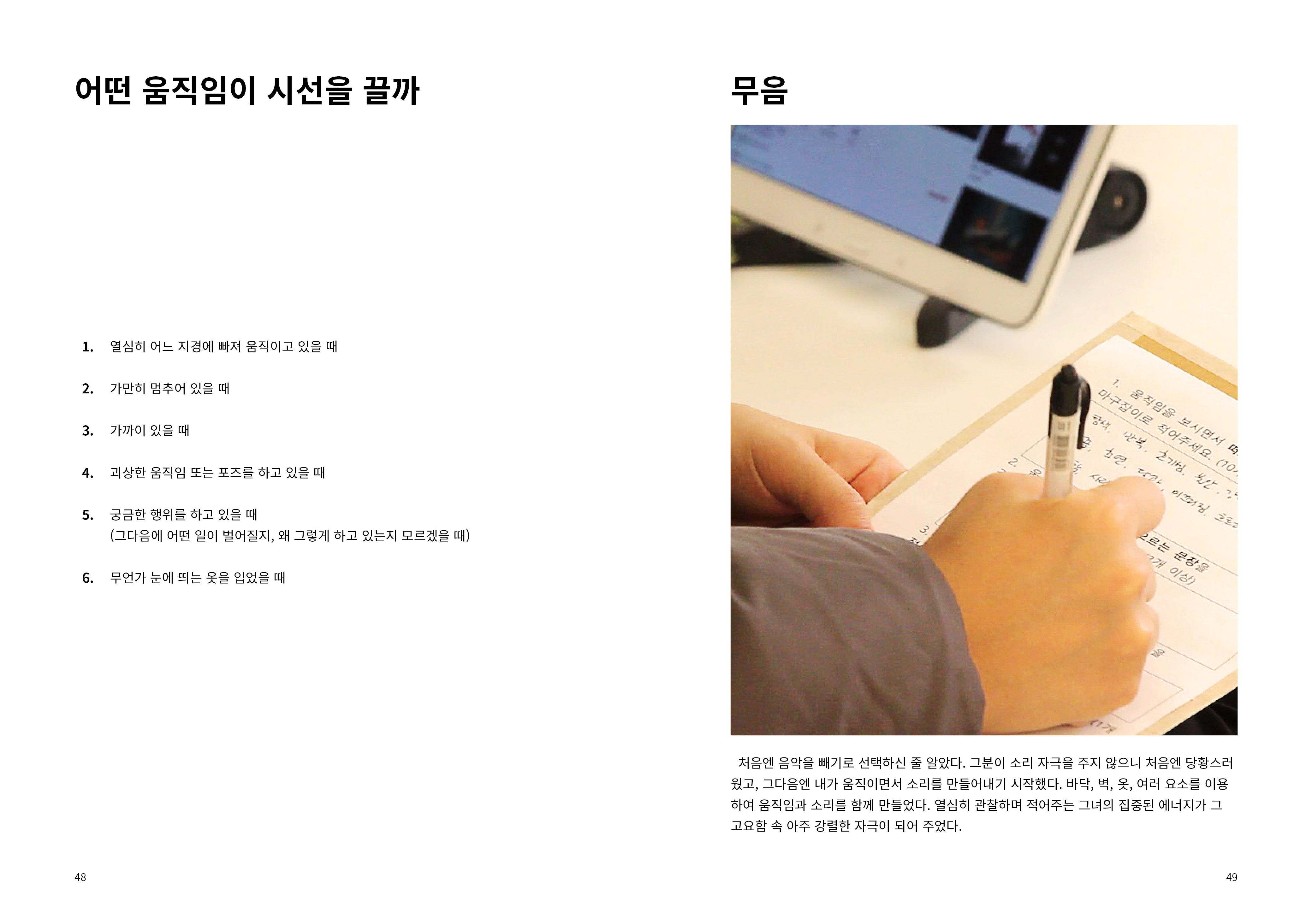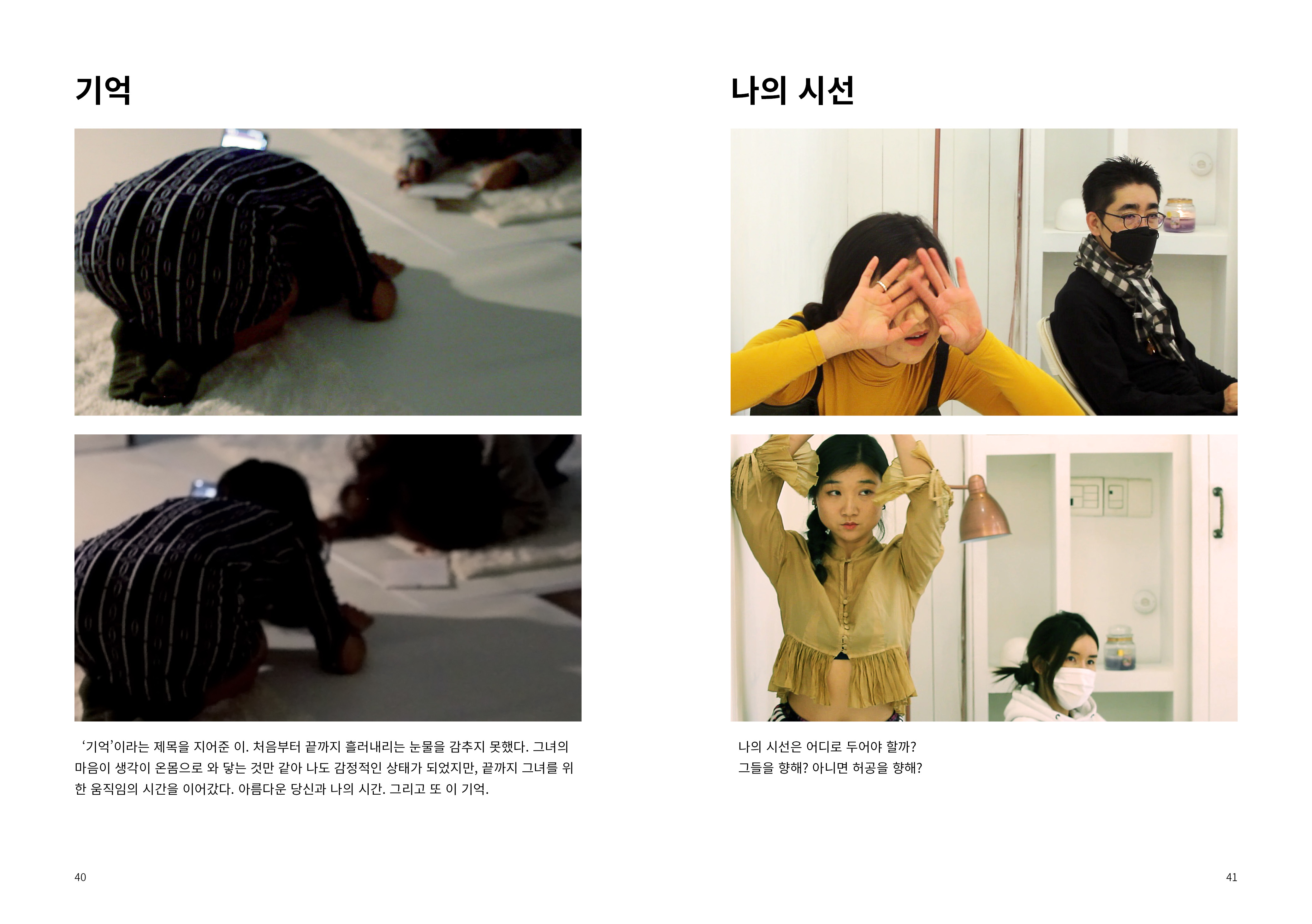 2009년부터 현재까지 작업과정 속의 생각, 경험, 이론 등을 작품활동의 중요 키워드(언어, 몸, 시각, 관객, 공간)로 나누어 정리해 나가는 글 모음들 입니다.