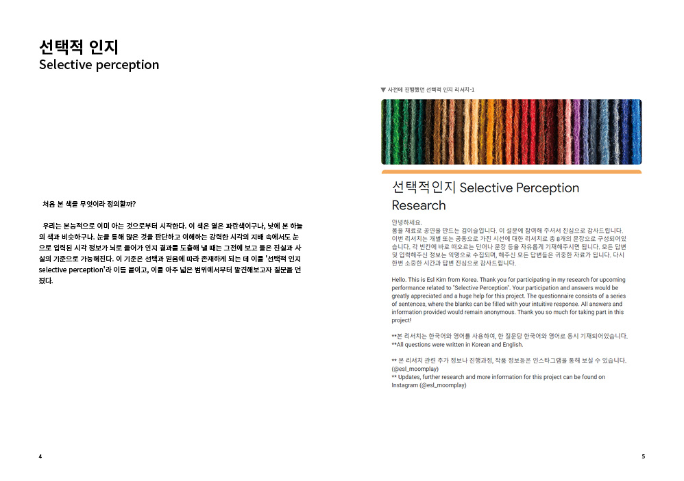 MOOMPLAY is an experimental performance group founded by Esl Kim in2019. The moniker, MOOMPLAY was derived from the Korean word 몸mom; meaning body and 눈noon meaning eye(sight). Through observation, investigation, experimentation and exploration, MOOMPLAY seeks to playfully and inquisitively utilize body, sight, mind and consciousness for the purpose expanding perspectives.