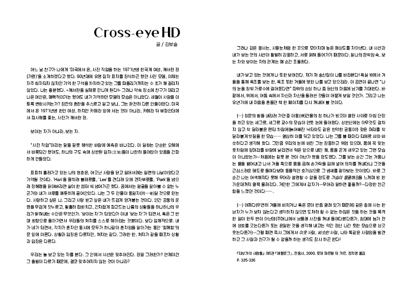 2009년부터 현재까지 작업과정 속의 생각, 경험, 이론 등을 작품활동의 중요 키워드(언어, 몸, 시각, 관객, 공간)로 나누어 정리해 나가는 글 모음들 입니다.