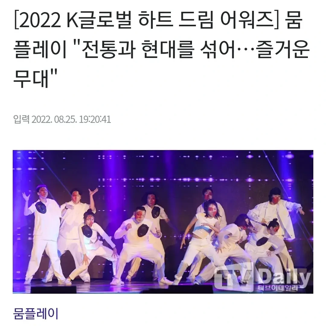 MOOMPLAY는 ‘본다’는 감각에서 출발해 몸과 시선, 그리고 그 사이에서 발생하는 관계와 인식의 방식을 탐구하는 공연예술 기반의 창작 플랫폼이다. 보는 행위가 이루어지는 공간을 무대와 객석의 구분에 한정하지 않고 극장, 갤러리, 도시의 거리, 공공장소, 디지털 환경과 스크린까지 확장하며, 보여주는 이와 보는 이의 역할이 뒤섞이는 지점에서 새로운 수행 경험을 만들어왔다. 장르와 매체의 경계를 두지 않고 현대무용, 장소특정형 작업, 전시와 같은 순수예술의 맥락과 TV, 콘서트, 뮤직비디오, 영상 등 상업예술의 현장을 함께 오가며 작업하고 있으며, 이러한 이중의 실천을 통해 서로 다른 창작 언어와 관객 경험이 만나는 접점을 탐색한다. 몸을 가장 본능적이고 고유한 언어이자 주재료로 삼아 감각의 교환과 선택이 발생하는 탐색의 과정을 이어가며, 그 안에서 생성되는 유희와 긴장을 관객과 함께 경험하고 공유하고자 한다. MOOMPLAY는 하나의 형식이나 스타일로 정의되기보다 예술과 대중, 실험과 소통 사이를 가로지르며 동시대의 감각적 교류와 확장된 공연 경험을 만들어가고자 한다.